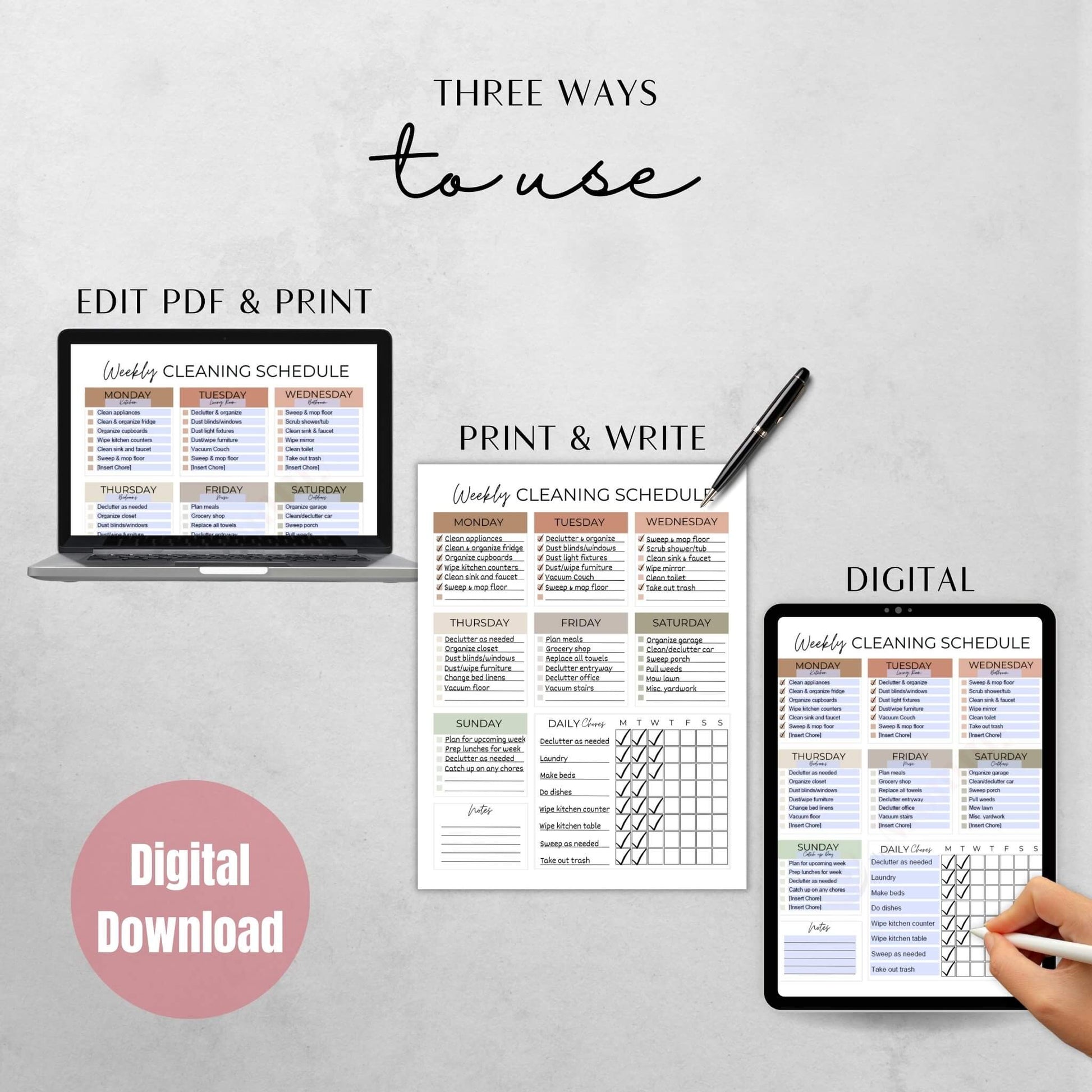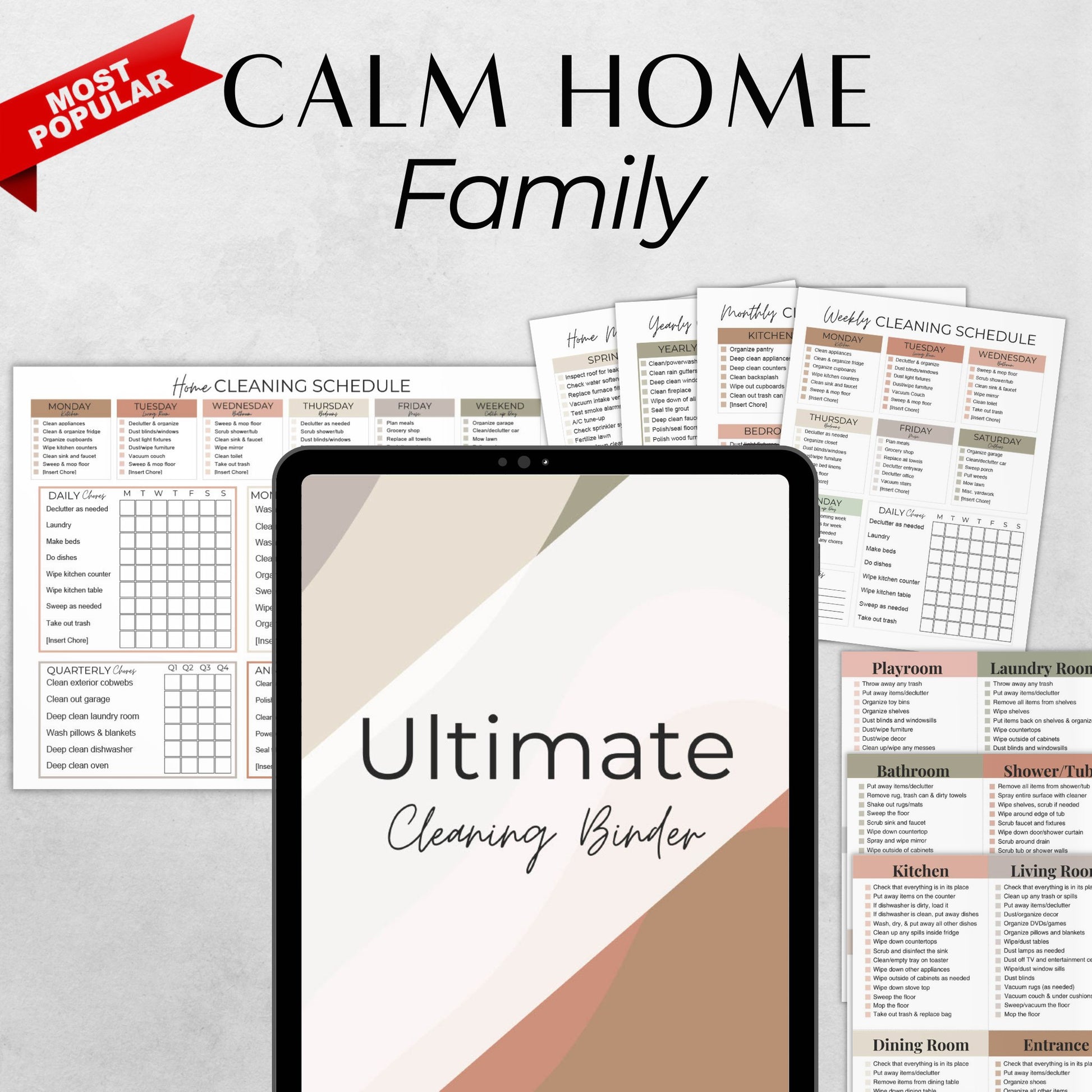 - Everything in Calm Home Starter (checklists, schedules, declutter, speed-clean, cards—plus the ⭐ Bonus One-Sheet All-in-One Schedule)